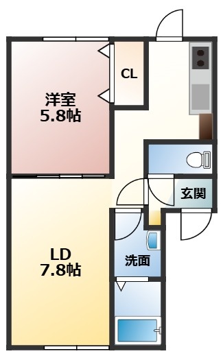 1LDK(36.36m²)└ LD7.8帖 洋室5.8帖 K2.5帖