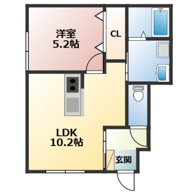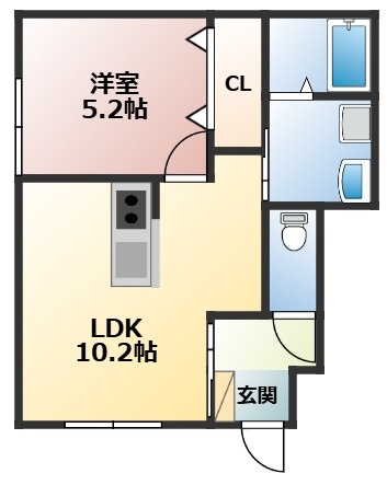 1LDK(37.73m²)└ LDK10.2帖 洋室5.2帖
