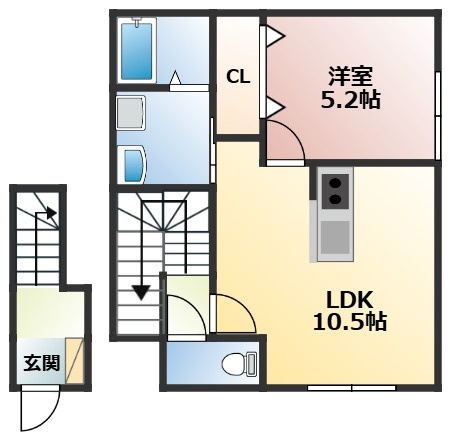 1LDK(40.48m²)└ LDK10.5帖 洋室5.2帖