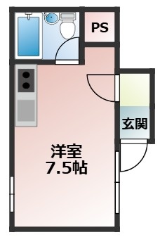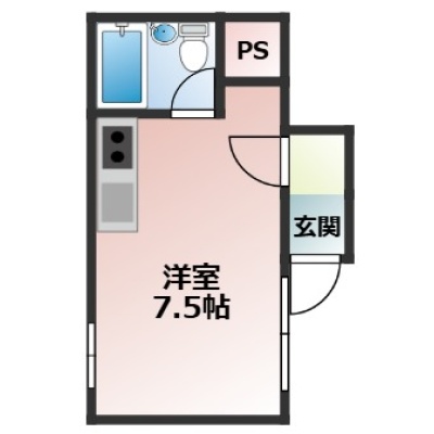 ワンルーム(19m²)└ 洋室7.5帖