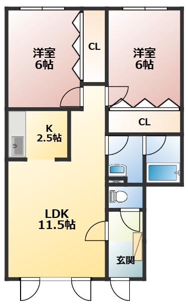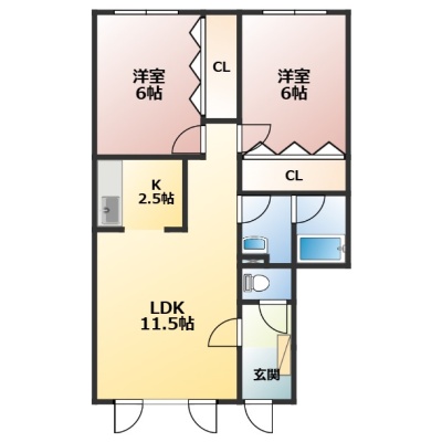 2LDK(58.79m²)└ LD11.5帖 洋室6帖 洋室6帖 K2.5帖