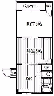 2K(36.02m²)└ 洋室6帖 洋室6帖