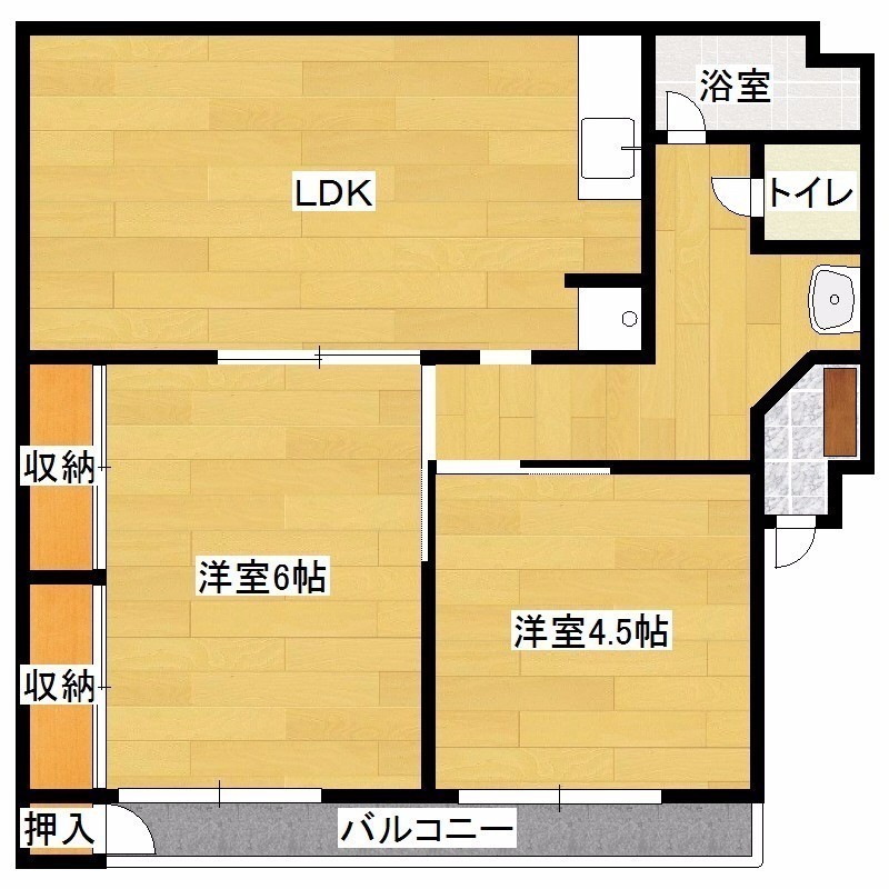 2DK(50.52m²)└ 洋室6帖 洋室4.5帖