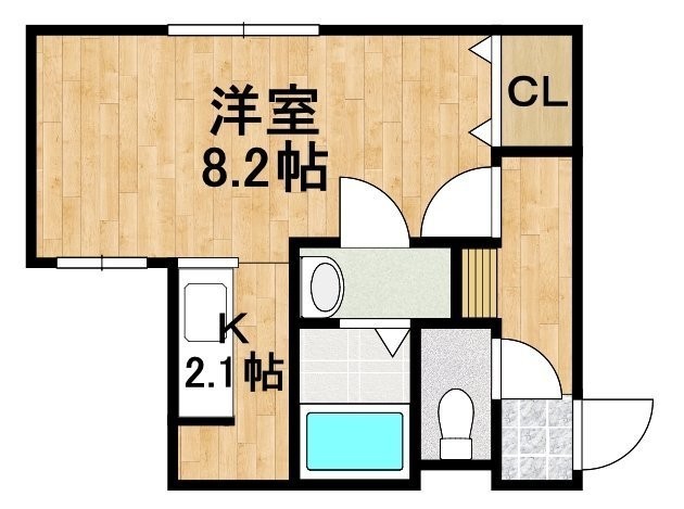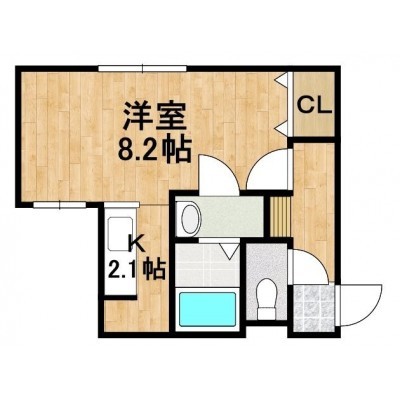 1K(27.53m²)└ 洋室8.2帖 K2.1帖