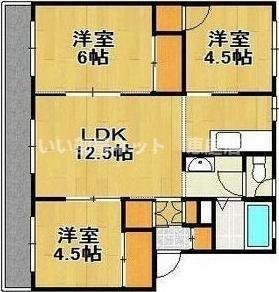 3LDK(61.79m²)└ LDK12.5帖 洋室6帖 洋室4.5帖 洋室4.5帖