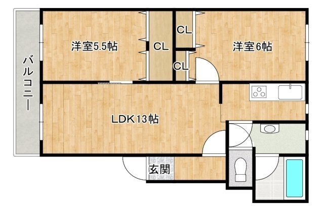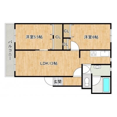 2LDK(54.31m²)└ LDK13帖 洋室6帖 洋室5.5帖