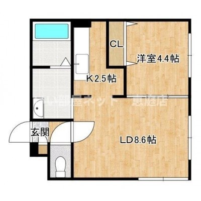 1LDK(34.2m²)└ LD8.6帖 K2.5帖 洋室4.4帖