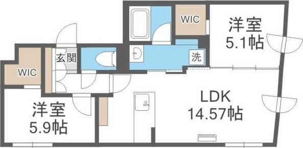 2LDK(56.75m²)└ LDK14.5帖 洋室5.9帖 洋室5.1帖