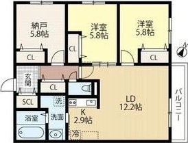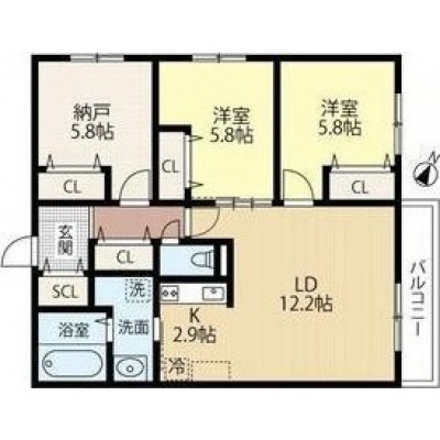 3LDK(72.9m²)└ LD12.2帖 K2.9帖 洋室5.8帖 洋室5.8帖 洋室5.8帖