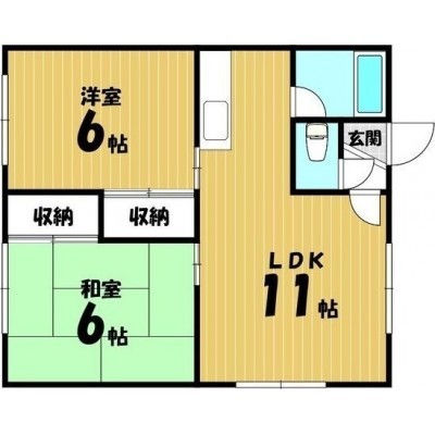 2LDK(45.36m²)└ LDK11帖 洋室6帖 和室6帖