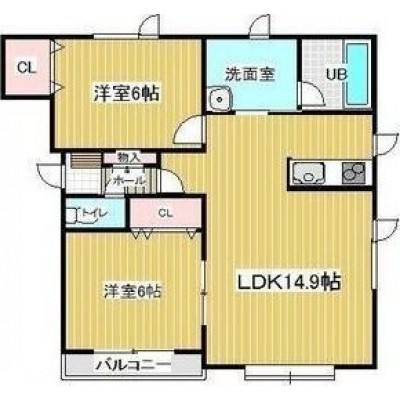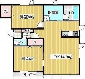 2LDK(57.57m²)└ LDK14.9帖 洋室6帖 洋室6帖