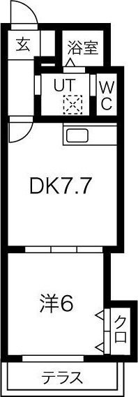 1DK(32.69m²)└ DK7.7帖 洋室6帖