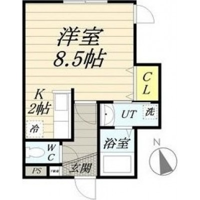 ワンルーム(26.44m²)└ K2帖 DK8.5帖