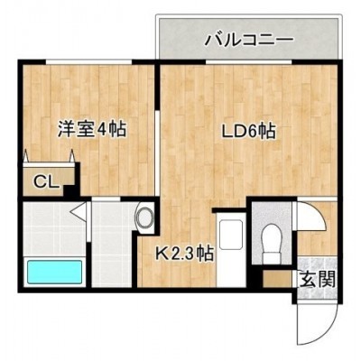 1LDK(30m²)└ LD6帖 K2.3帖 洋室4帖