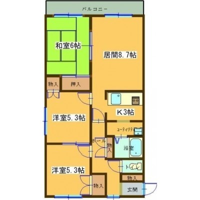 3LDK(45.84m²)└ LDK8.7帖 洋室5.3帖 洋室5.3帖 和室6帖