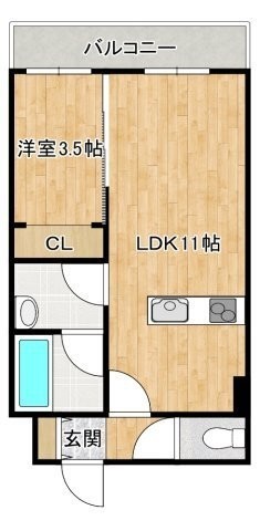 1LDK(34.55m²)└ LD7帖 K4帖 洋室3.5帖