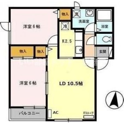 2LDK(58.56m²)└ LD10.5帖 K2.5帖 洋室6帖 洋室6帖