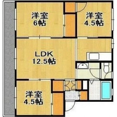 3LDK(61.79m²)└ LDK12.5帖 洋室6帖 洋室4.5帖 洋室4.5帖