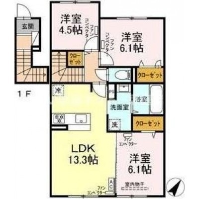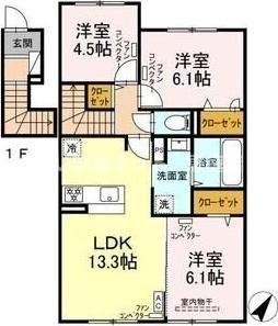3LDK(71.67m²)└ LDK13.3帖 洋室6.1帖 洋室6.1帖 洋室4.5帖