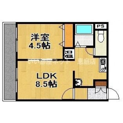 1LDK(34m²)└ LDK8.5帖 洋室4.5帖