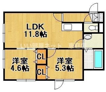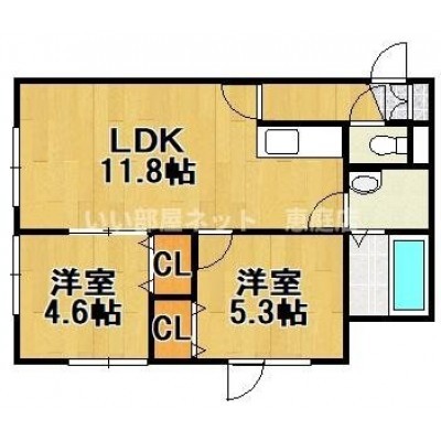 2LDK(48.62m²)└ LDK11.8帖 洋室5.3帖 洋室4.6帖