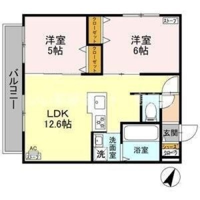 2LDK(50.04m²)└ LDK12.6帖 洋室6帖 洋室5帖
