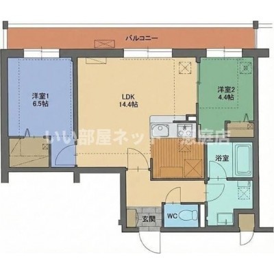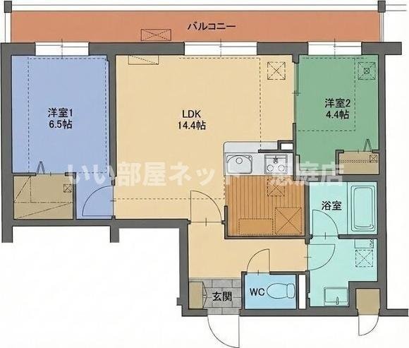2LDK(62.32m²)└ LDK14.4帖 洋室6.6帖 洋室4.5帖