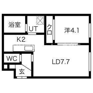 1LDK(32.2m²)└ LD7.7帖 K2帖 洋室4.1帖