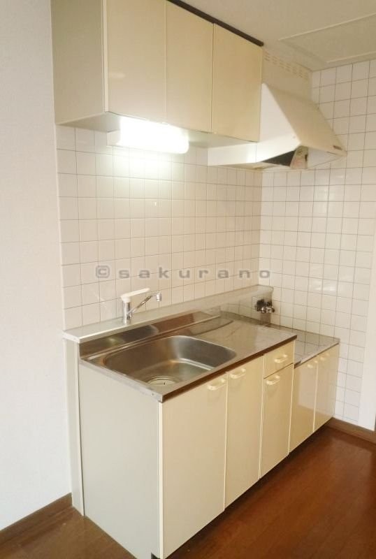 キッチンは、タイル調の壁が印象的。シンクはやや広め、作業スペ