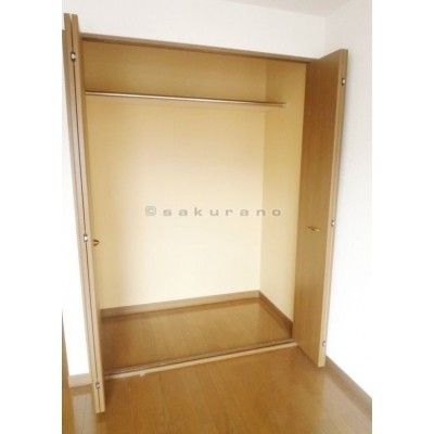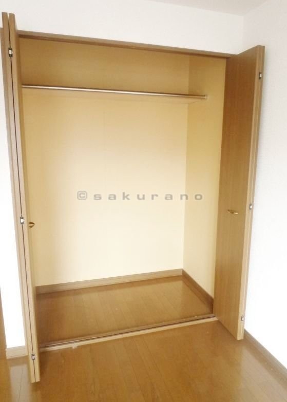 お部屋には大きめの収納スペースがあります。中にはポールがあ