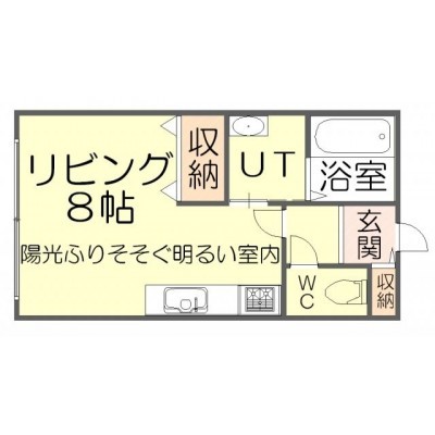 お部屋は洋室8帖のワンルーム設計。収納スペースもあるので一人