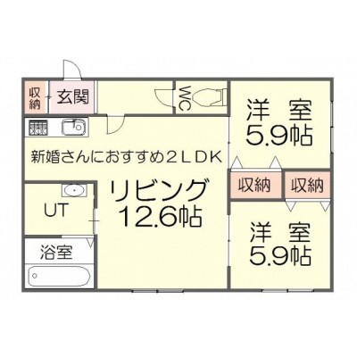 2LDK(55.8m²)└ LDK12.6帖 洋室5.9帖 洋室5.9帖