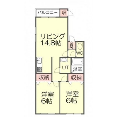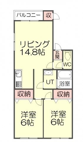 2LDK(56.96m²)└ LDK14.8帖 洋室6帖 洋室6帖