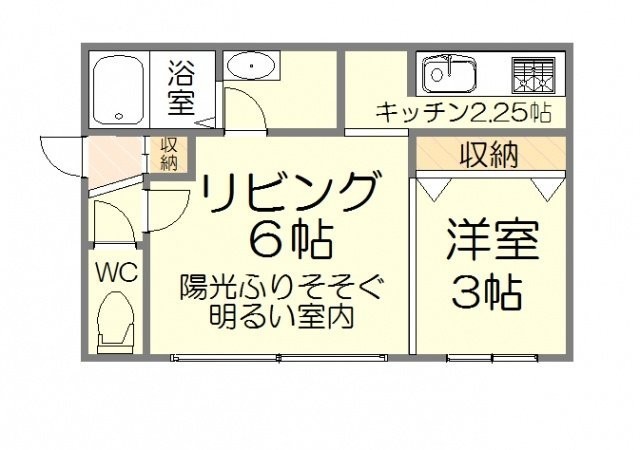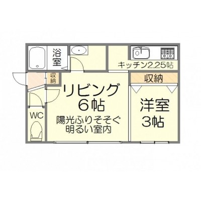 1DK(28.46m²)└ D6帖 K2.2帖 洋室3帖