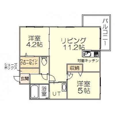 2LDK(44.64m²)└ LDK11.2帖 洋室5帖 洋室4.2帖