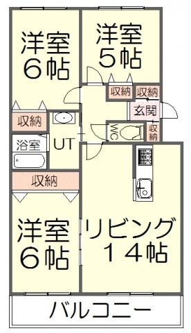 3LDK(69.19m²)└ LDK14帖 洋室5帖 洋室6帖 洋室6帖