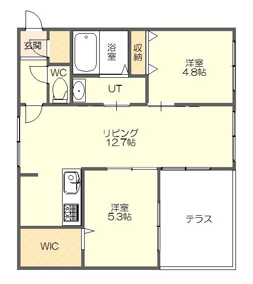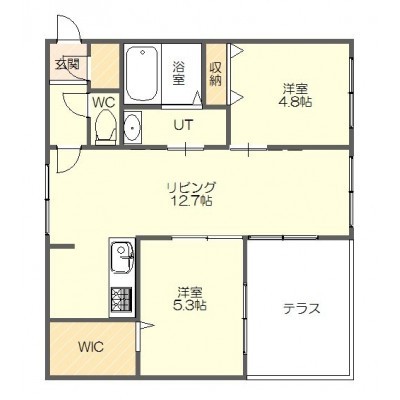 2LDK(55.96m²)└ LDK12.7帖 洋室5.3帖 洋室4.8帖