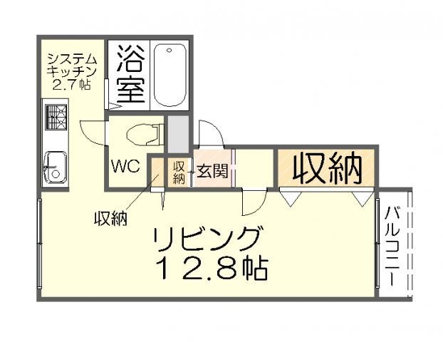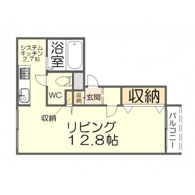 1DK(34.4m²)└ LD12.8帖 K2.7帖