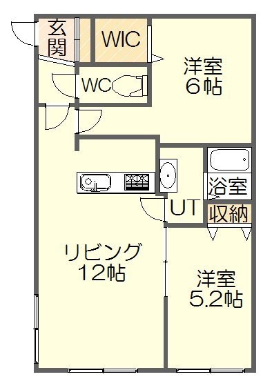 2LDK(51.98m²)└ LDK12帖 洋室6帖 洋室5.2帖