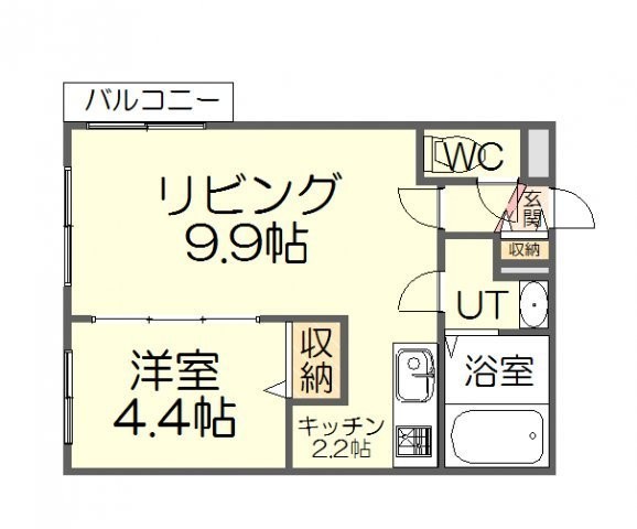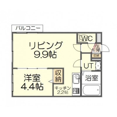 1LDK(34.86m²)└ LD9.9帖 K2.2帖 洋室4.4帖
