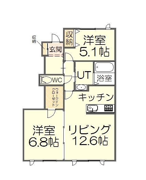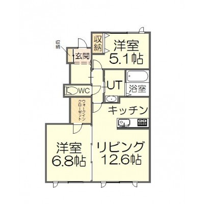 2LDK(57.16m²)└ LDK12.6帖 洋室6.8帖 洋室5.1帖
