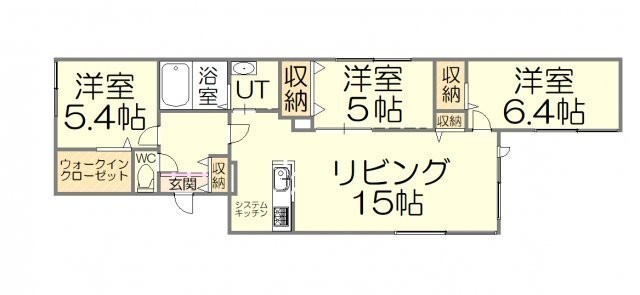 3LDK(69.58m²)└ LD15帖 K3帖 洋室6.4帖 洋室5.4帖 洋室5帖