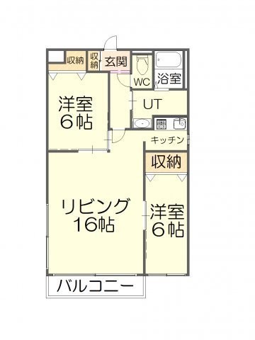 2LDK(62.16m²)└ LDK16.0帖 洋室6.0帖×2