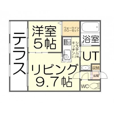 1LDK(37.53m²)└ LD9.7帖 K2.2帖 洋室5帖
