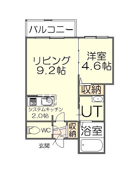 1LDK(36m²)└ LD9.2帖 K2.1帖 洋室4.6帖