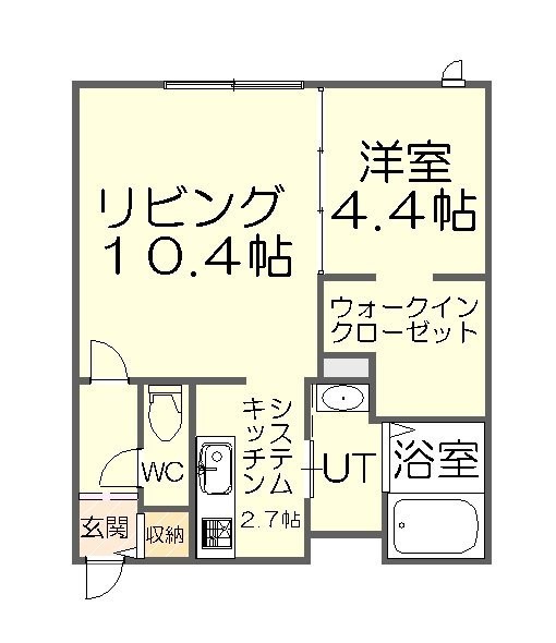 1LDK(37.91m²)└ LD10.4帖 K2.7帖 洋室4.4帖
