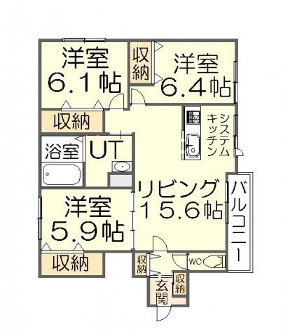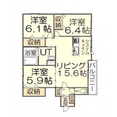 3LDK(74.69m²)└ LDK15.6帖 洋室6.4帖 洋室6.1帖 洋室5.9帖