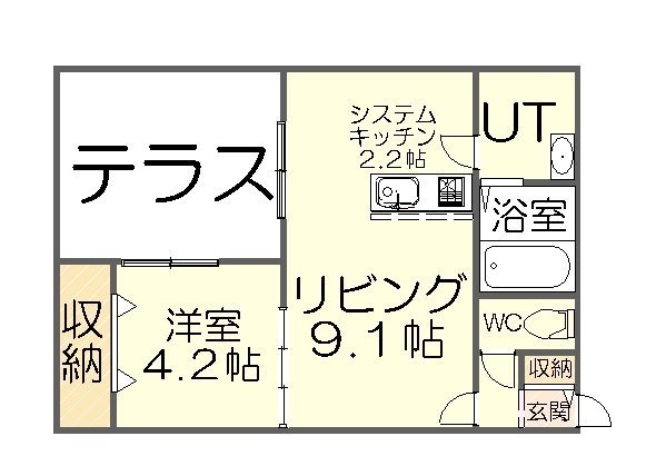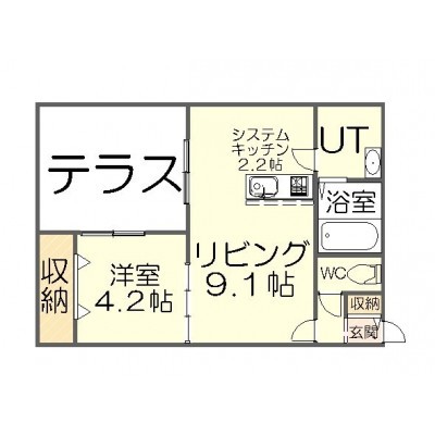1LDK(34.72m²)└ LD9.1帖 K2.2帖 洋室4.2帖