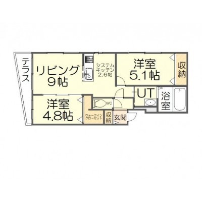 2LDK(48.65m²)└ LD9帖 K2.6帖 洋室5.1帖 洋室4.8帖