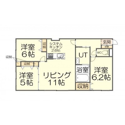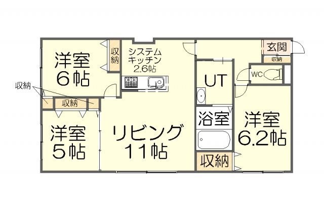 3LDK(72.24m²)└ LD11帖 K2.6帖 洋室6.2帖 洋室6帖 洋室5帖